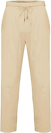 Mens Cotton Linen Drawstring Pants Elastic Waist Casual Jogger Yoga Pants